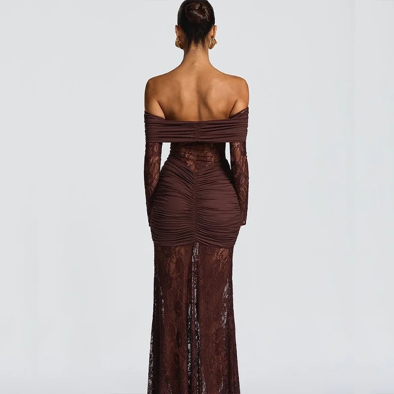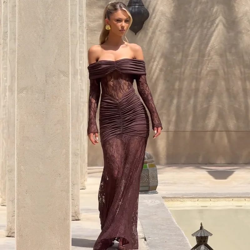 Vintage Elegant Off Shoulder Slim Fit Hollow Out Maxi Dress